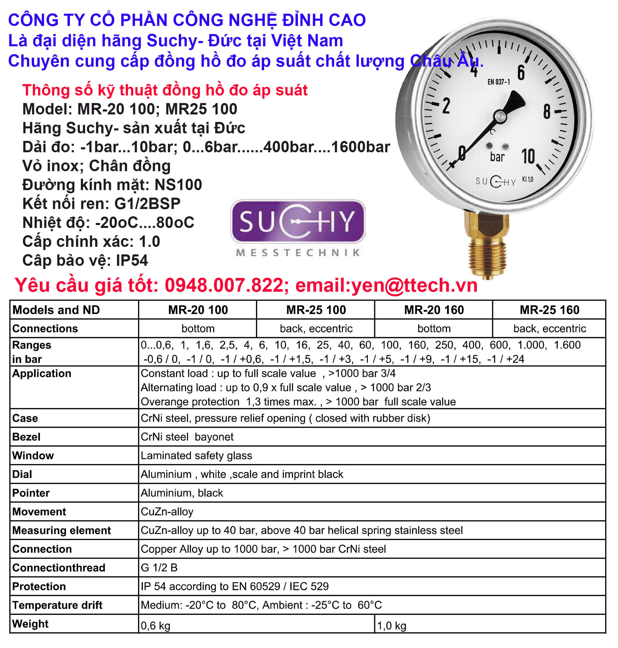 Dải đo đặt hàng đồng hồ đo áp suất Suchy MR-20; MR-25
