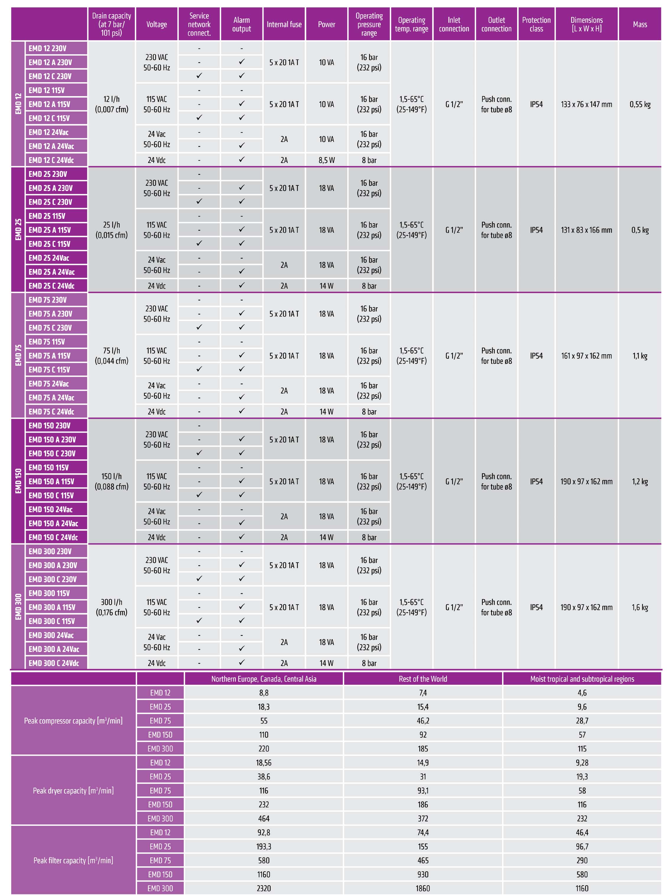 Thông số kỹ thuật bộ xả ngưng điện EMD12-230V Omega-Air