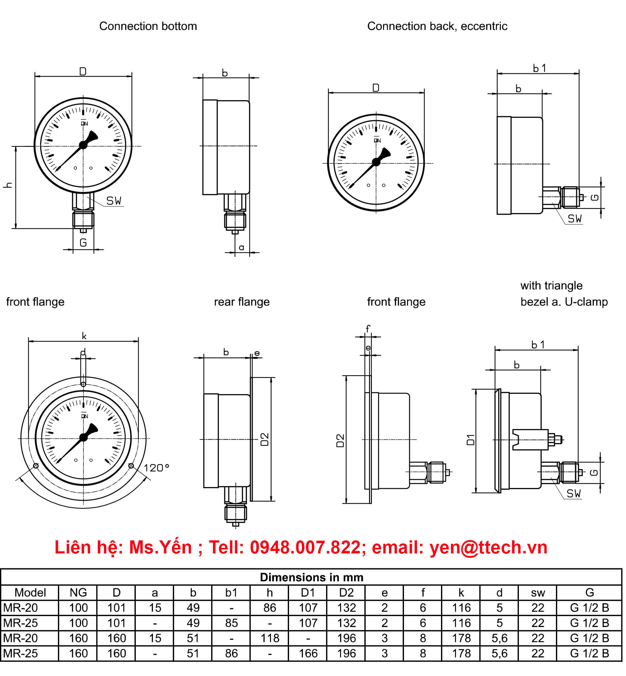 Dải đo đặt hàng đồng hồ đo áp suất Suchy MR-20; MR-25