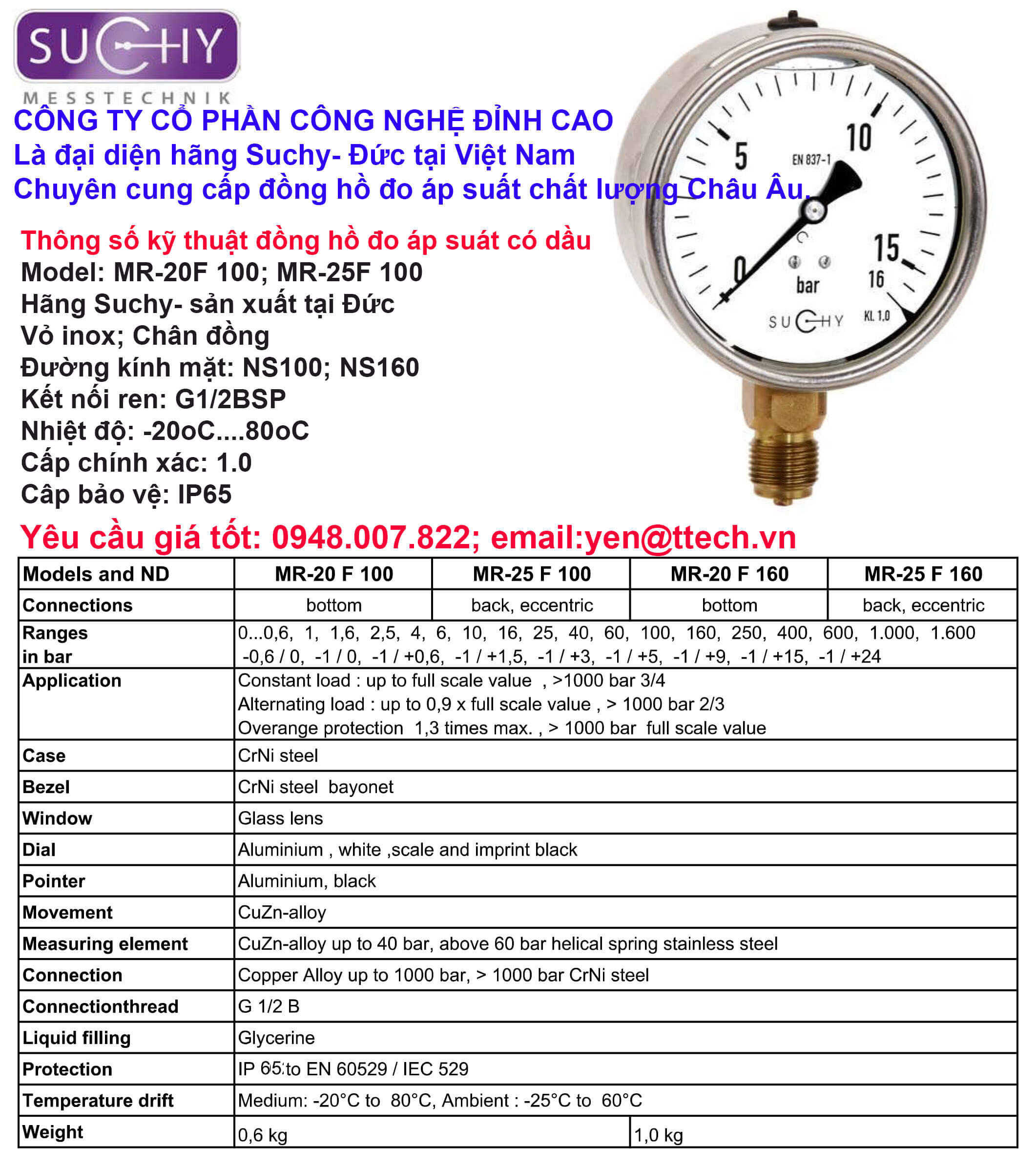Đồng hồ đo áp suất có dầu chống rung MR-20F 100