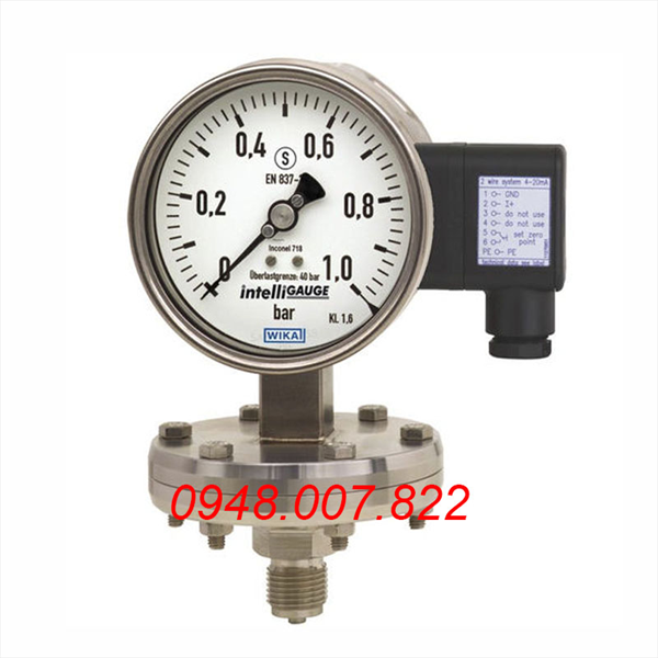 Đường kính mặt đồng hồ: 40, 50, 63, 80, 100, 160 Dải đo: 0....400bar